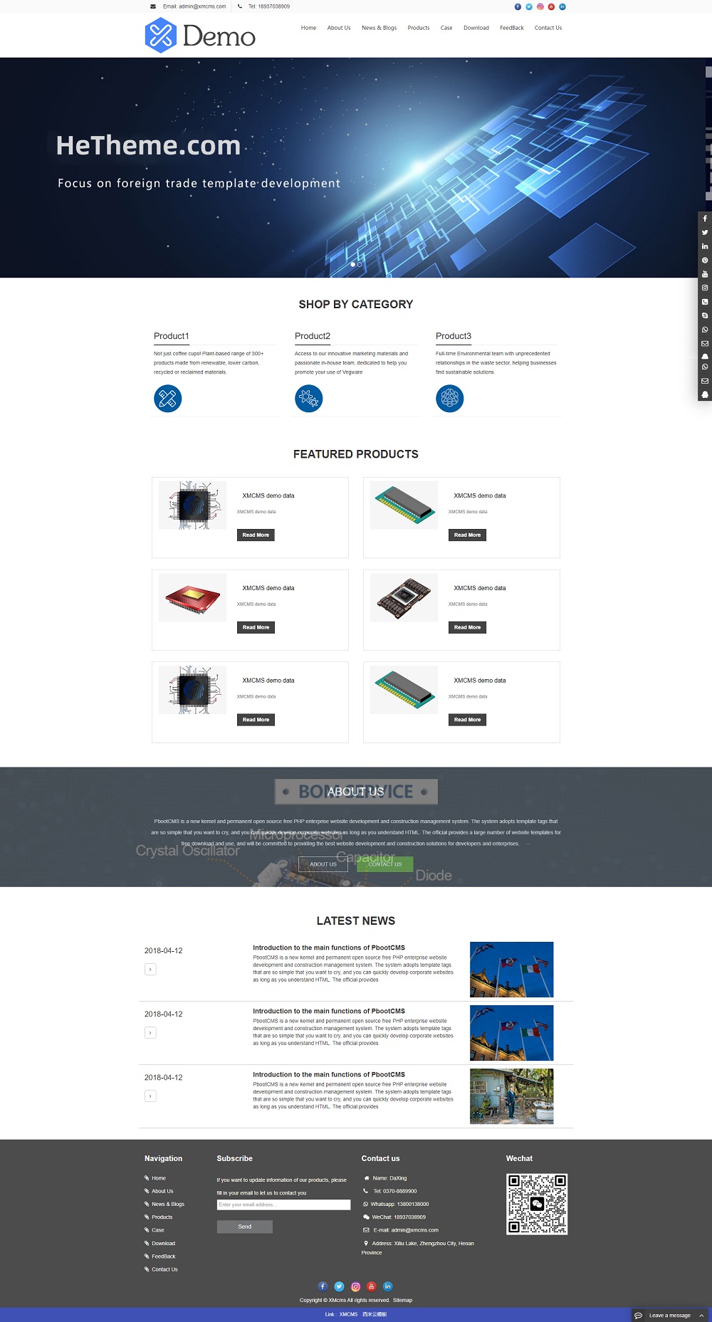 纯英文响应式电子元件科技五金类PBOOTCMS网站模板源码(自适应手机端)
