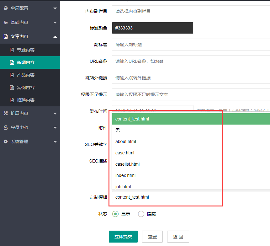我们在制作网站的过程中可能会遇到这样的需求,某条新闻、产品设计相对复杂,统一的栏目模板不能解决需求。这时候就需要单独给某个新闻、产品设计一个模板。