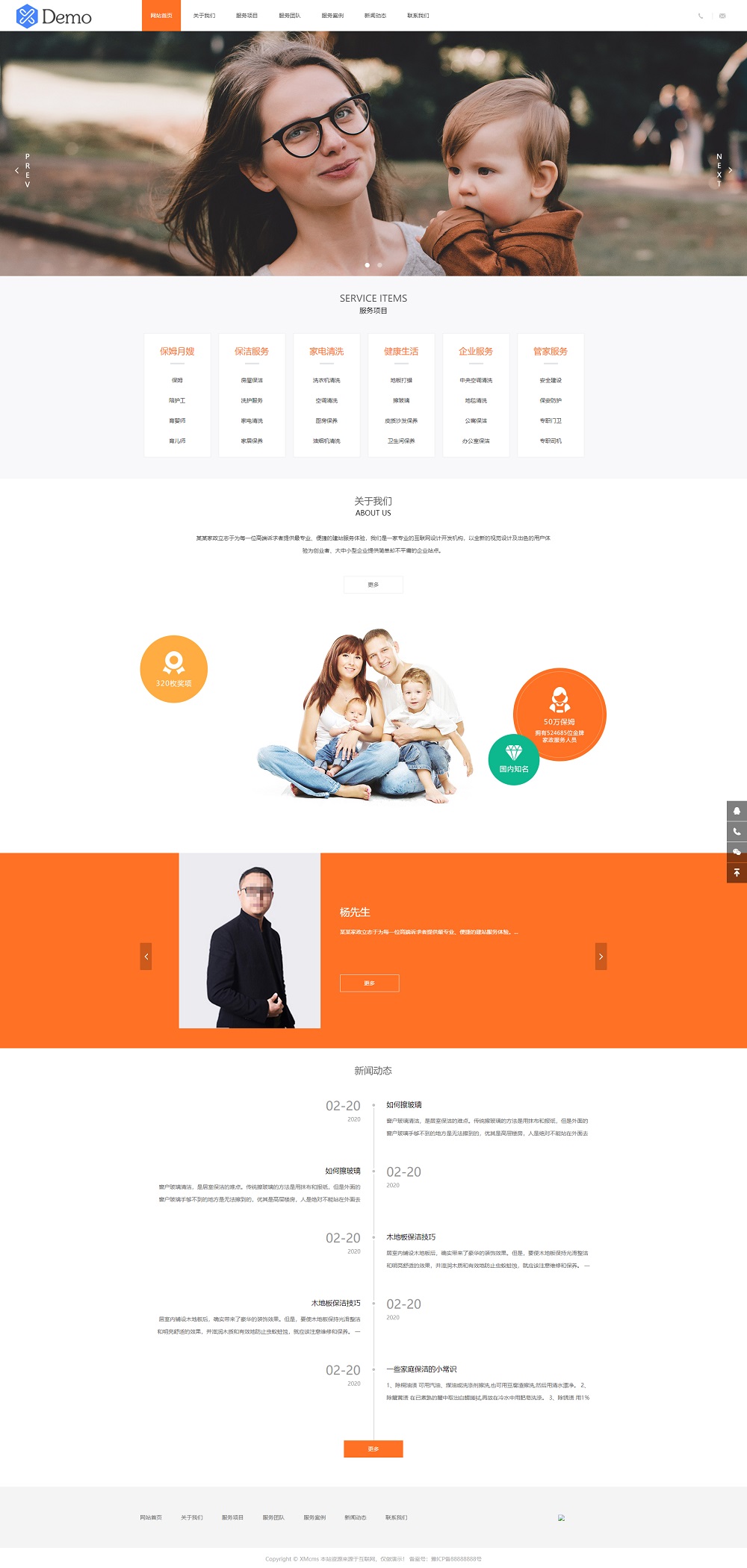PBOOTCMS响应式家政保姆雇佣类企业网站模板(源码自适应手机端)